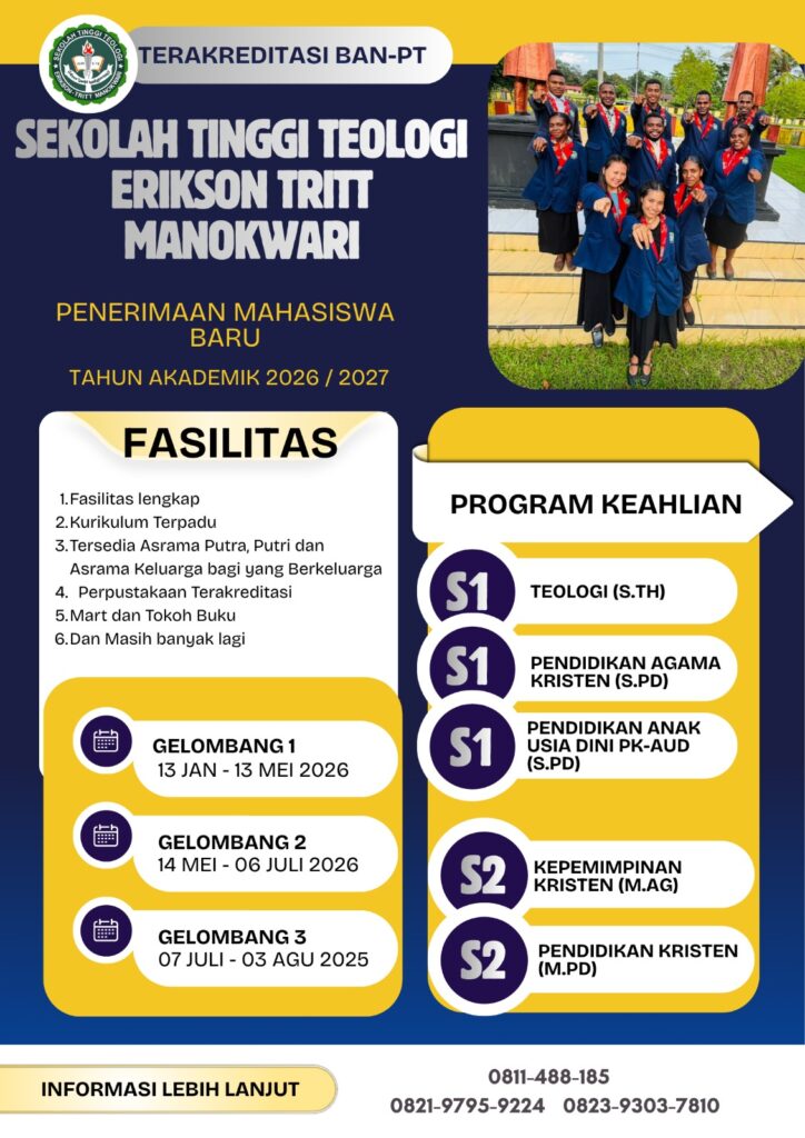 Sekolah Tinggi Teologi Erikson-Tritt Manokwari, tempat Anda dipersiapkan menjadi pendidik yang berdampak bagi bangsa dan gereja.